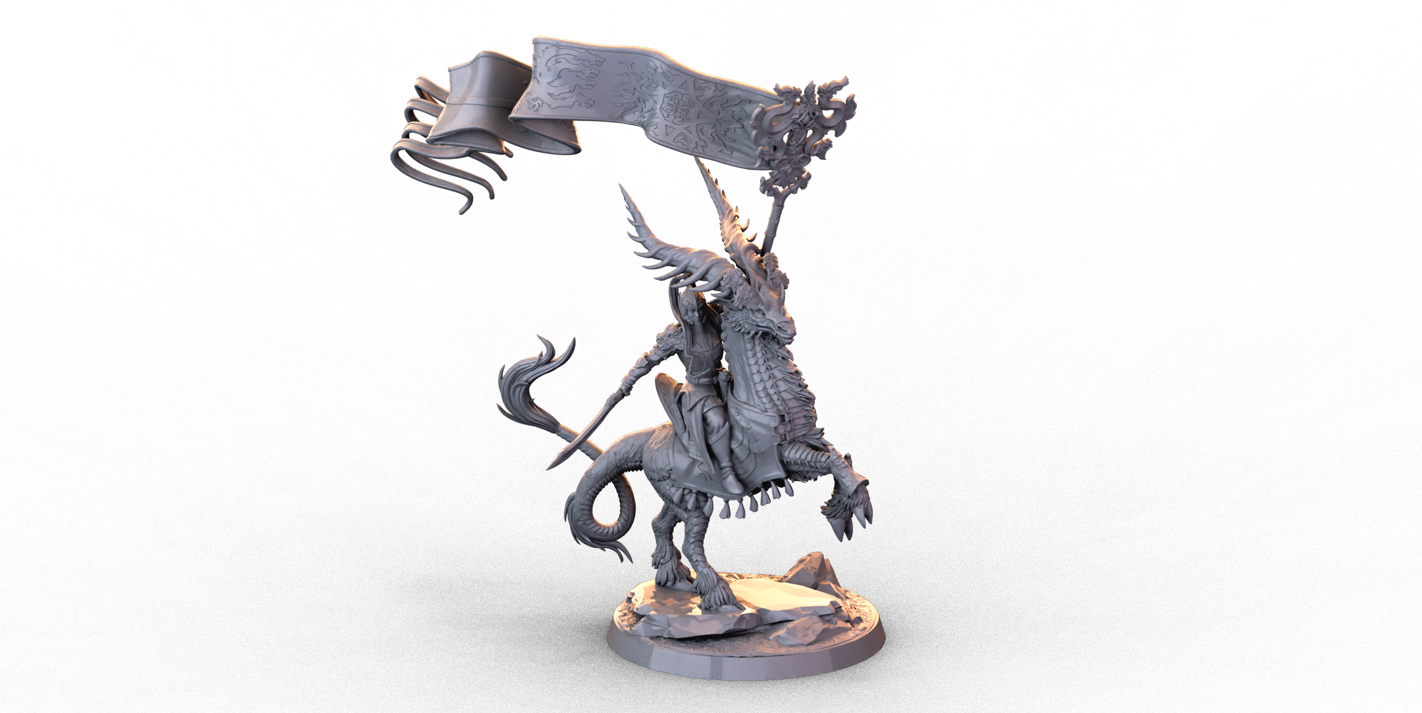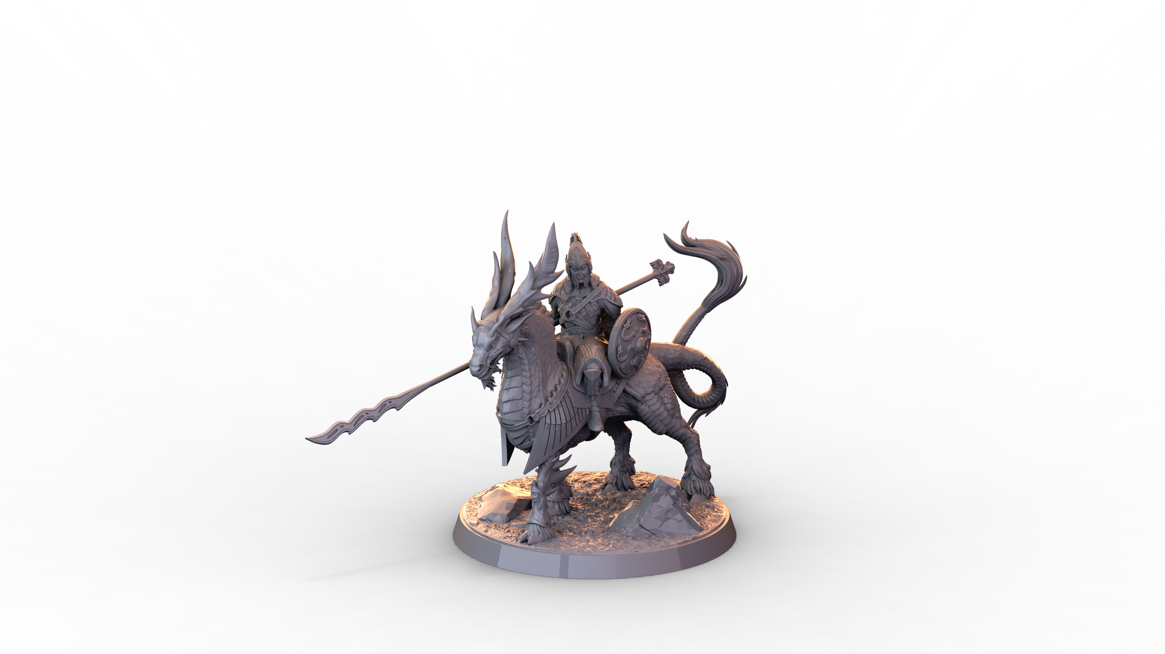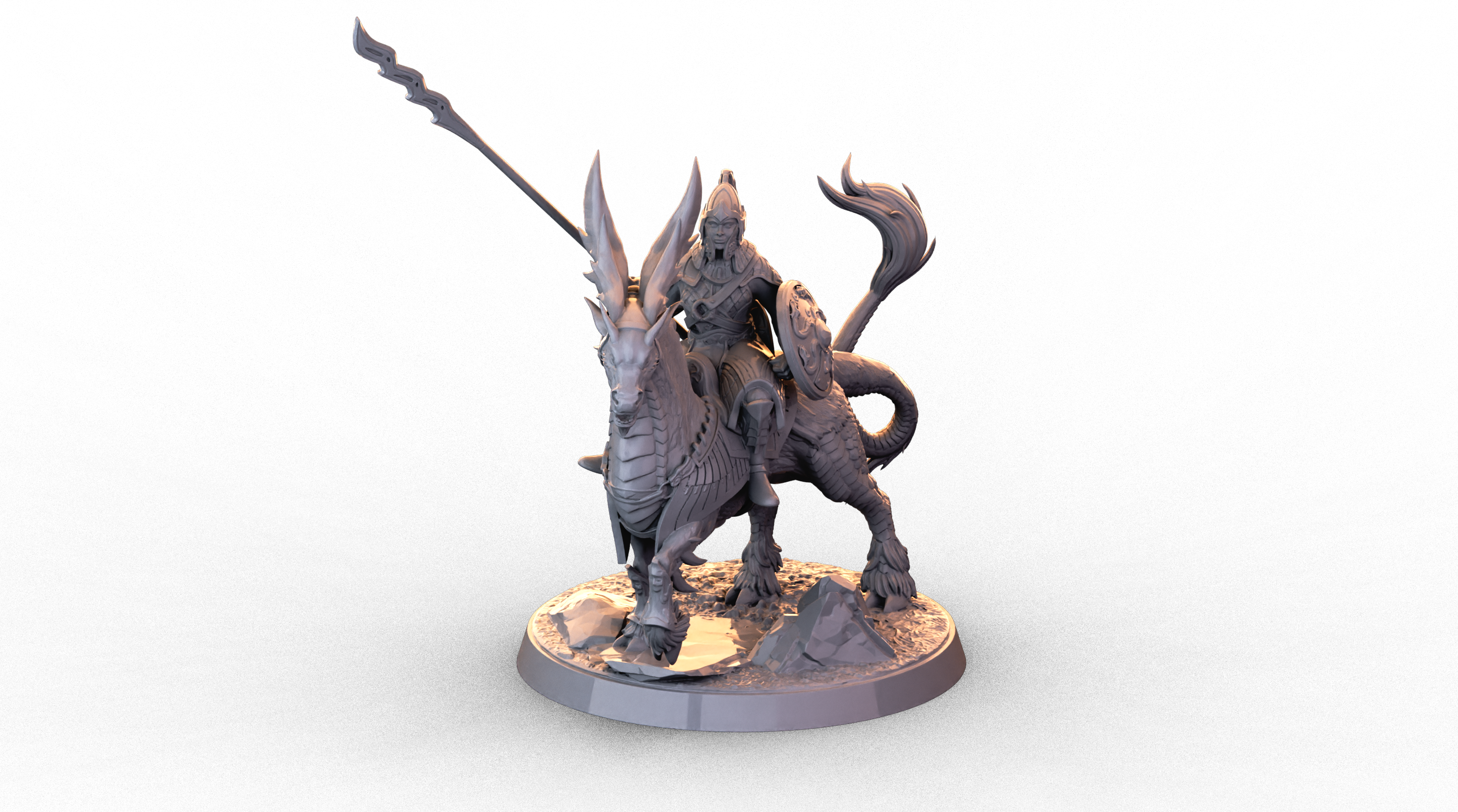 Apoyando a estos valientes guerreros están los jinetes de qirin, una caballería especializada que utiliza la inteligencia de los qirin para realizar maniobras avanzadas más allá de las capacidades de una montura normal. Junto a los jinetes de qirin, la caballería de bucentauros constituye el elemento más temible del ejército allariano. Estas poderosas criaturas compensan su falta de disciplina con su ferocidad y pasión por la batalla.